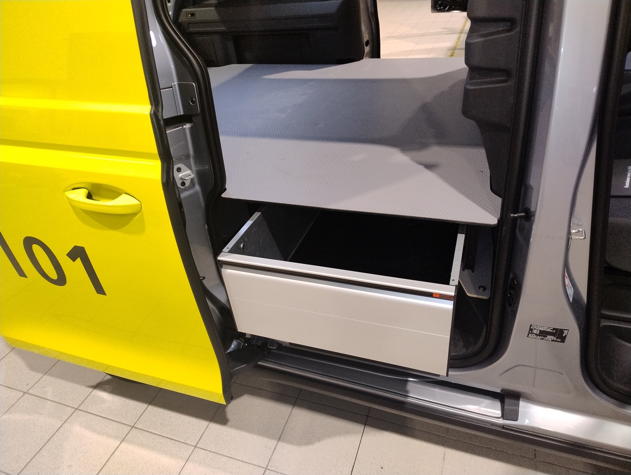 Bilen skal dekke flere arbeidsområder, og er godkjent for utrykningskjøring, samt utstyrt med dobbeltgulv fra Work System i varerommet for oppbevaring av utstyr og verktøy.