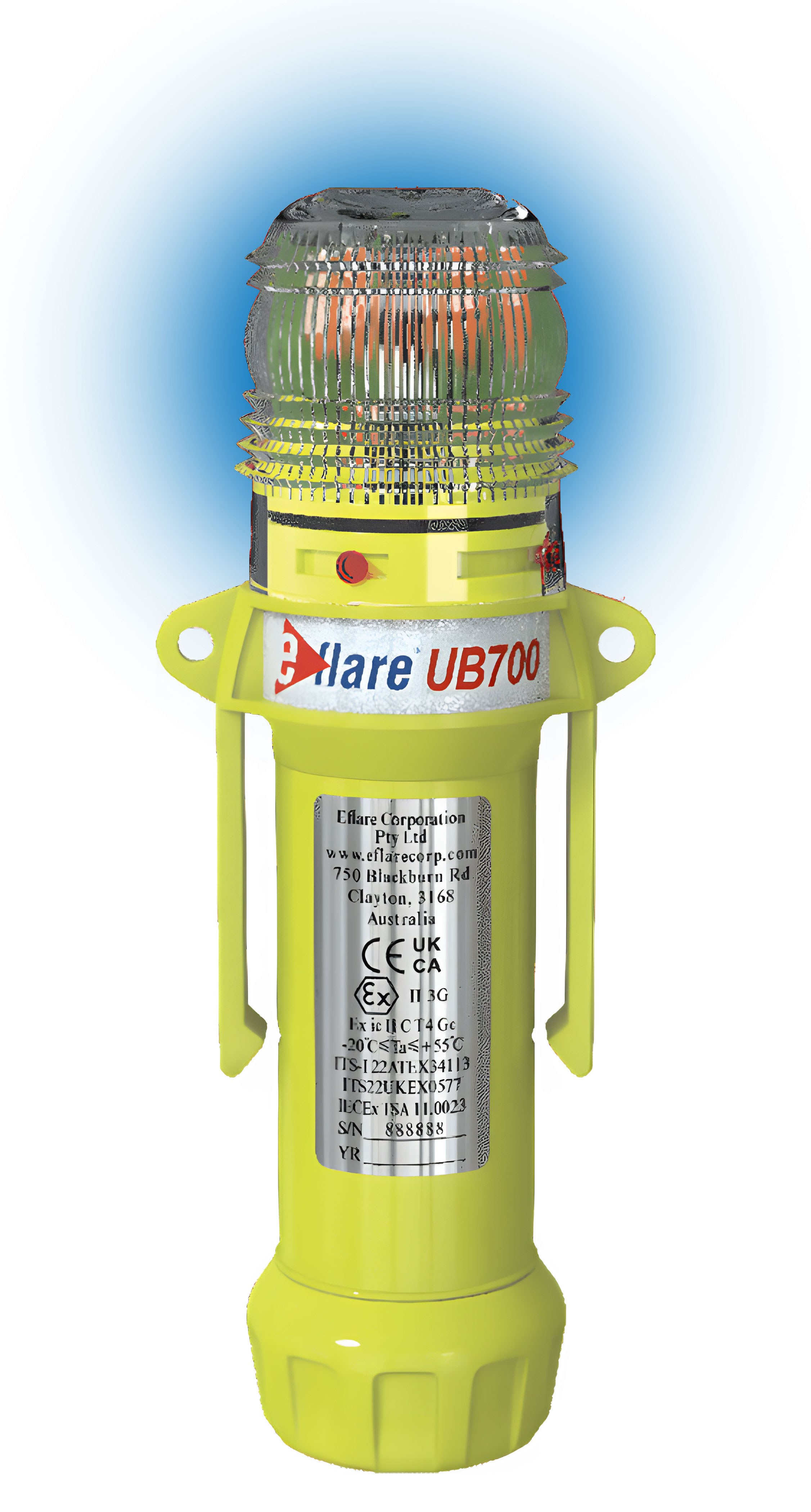 Varsellyset har et robust fluorplast-hus med refleksstripe som forbedrer synlighet både dag og natt, og drives av to D-celle alkalinebatterier (ikke inkludert) med mer enn 40 timers kontinuerlig driftstid, avhengig av driftmodus og miljøforhold. UB700 er egnet for krevende miljøer som gruvedrift, jernbane, luftfart, militær, transport, industri og logistikk.