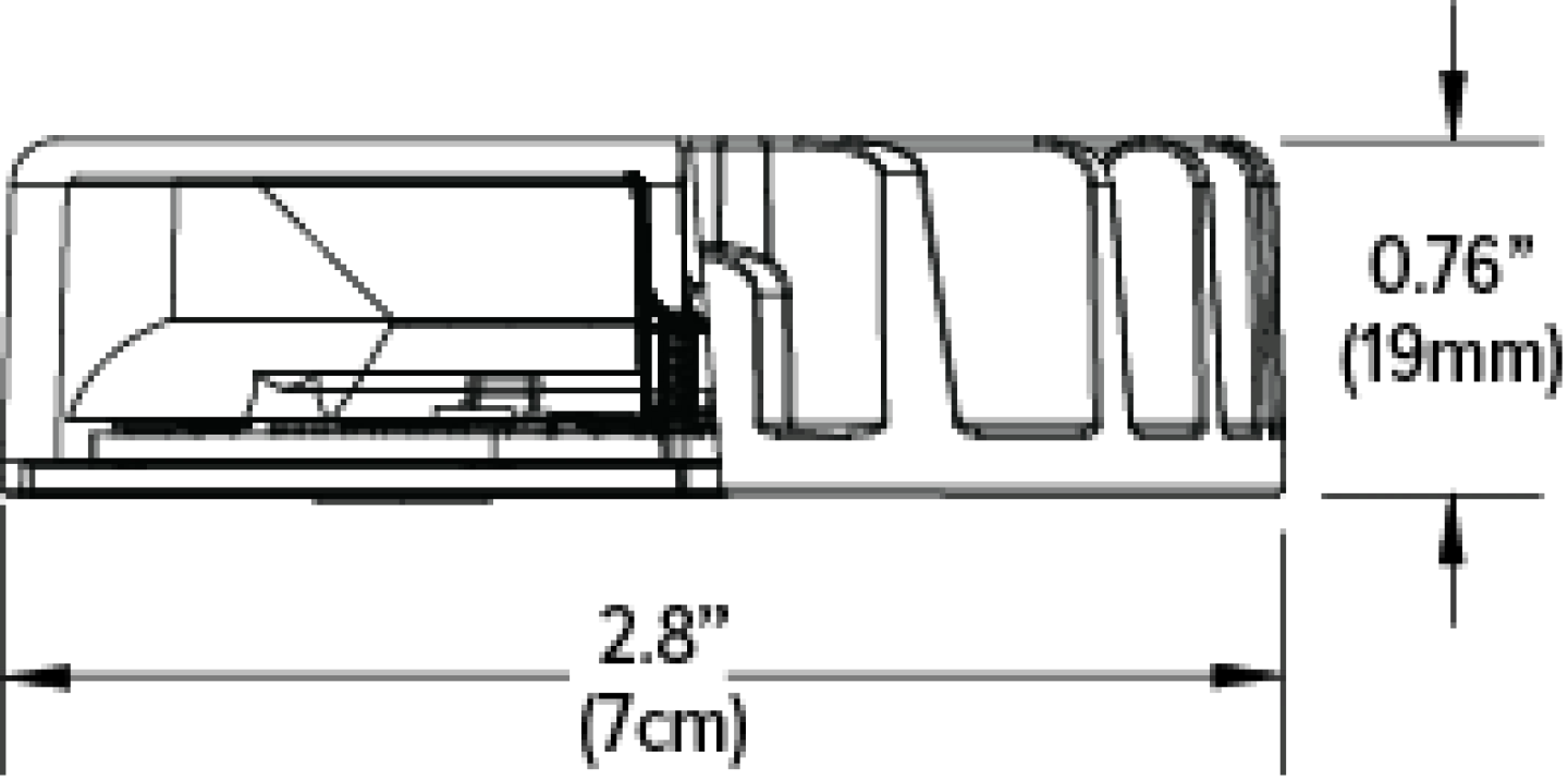 - Dimensjoner: 19 mm (dybde) × 71 mm (diameter)